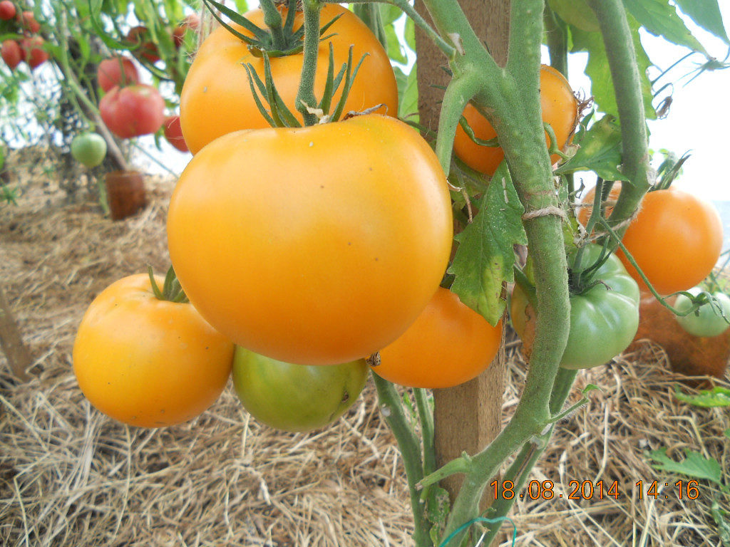 Имеет множество положительных отзывов среди садоводов-огородников. Куст достигает в длину практически 2 метра. Высокорослая культура допускает формирование в 1 или 2 стебля. Плоды — средние, достигающие веса в 90-160 г. Цвет и форма — классические.