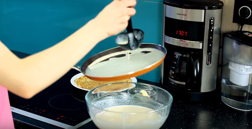7.Now batter is ready, we can start to bake pancakes. – Тесто для блинов готово, мы начинаем печь блины.