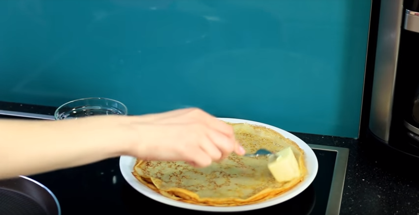 - Сложить блины стопкой, при желании можно предварительно каждый из них смазать кусочком сливочного масла.