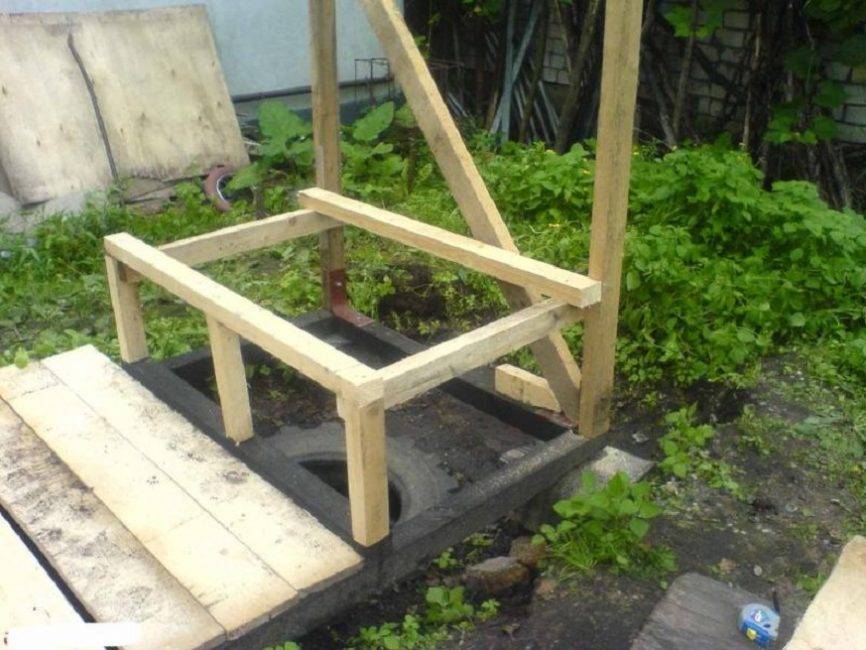 На последнем этапе работ по сооружению каркаса собирается и обшивается стульчак.