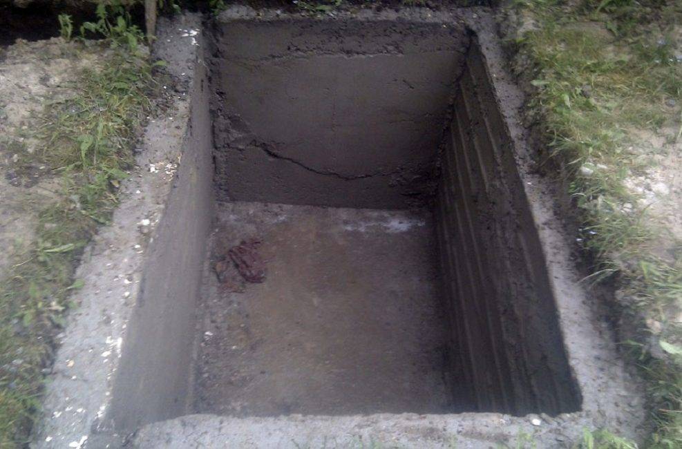 - Герметичная. В такой яме дно армируется и заливается бетоном. Стенки герметизируют, швы замазывают бетоном или шпаклюют раствором.