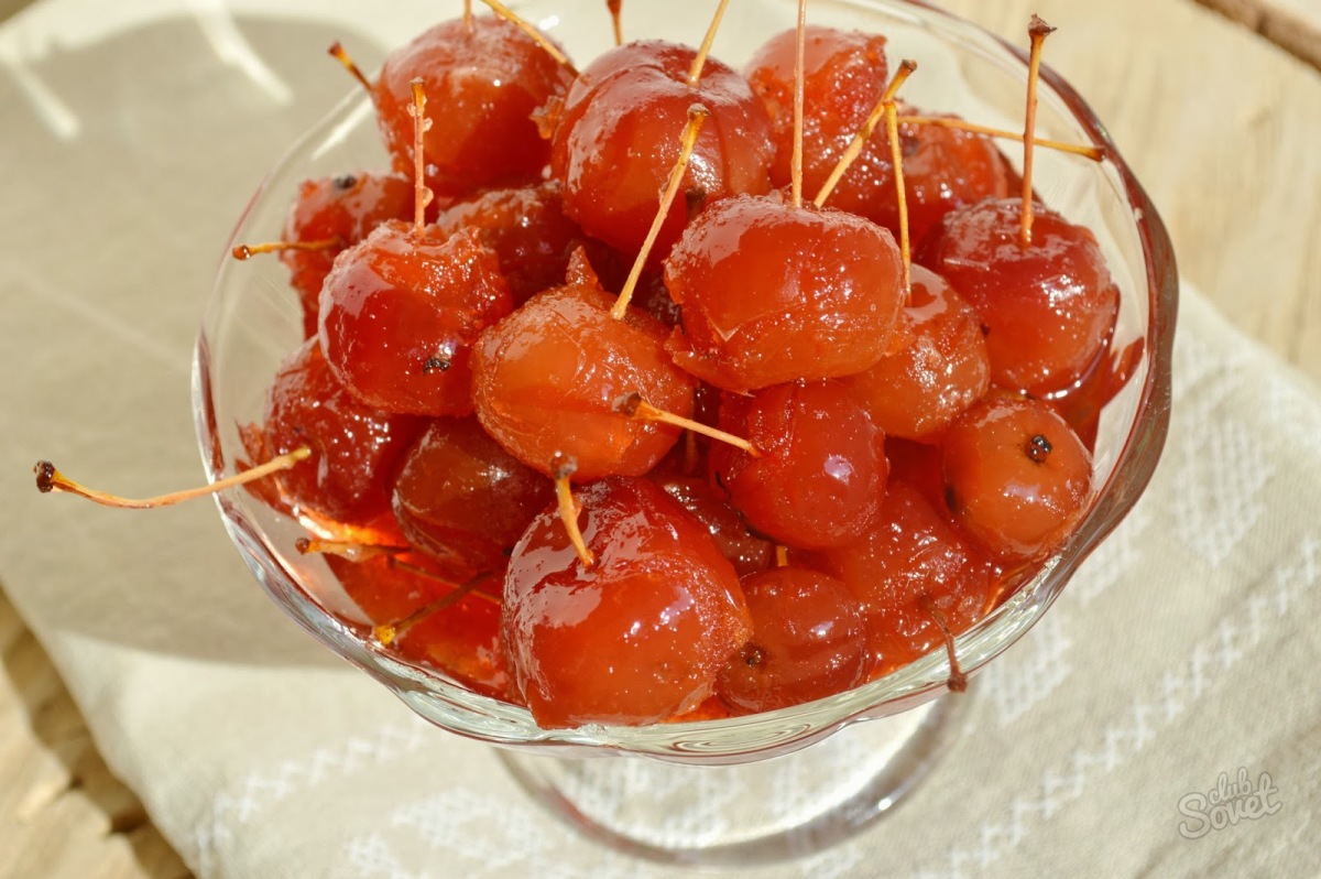 Если вы оставите «ножки» у райских яблочек, то данный десерт станет еще от этого только краше и забавнее. Тем более им можно в последствии украшать разные сладости, такие как тортики и пирожное. Муж у меня бросает их даже в коктейль.