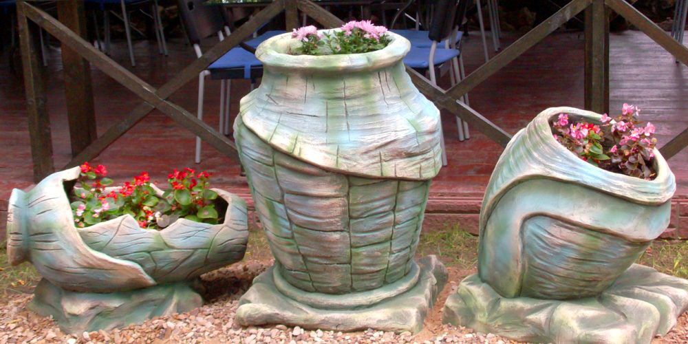 маленькой, напоминающей обычный цветочный горшок; среднего размера, являясь одной из идентичных изделий для цветочной композиции; большой – ярким акцентом садового участка.