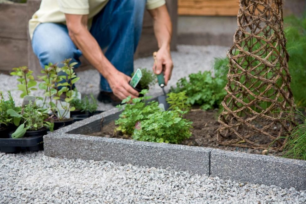 - Засыпают землей. Разравнивают на поверхности бортиков.