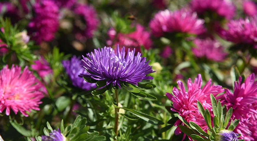 Callistephus chinensis – единственные однолетние или двухлетние астры. В зависимости от сорта кусты достигают высоты 15- 10 сантиметров. Ботанически они принадлежат к разным семействам растений. Цветок махровый, цветет куст очень обильно. Данный вид включает растение Астра помпонная, отличающееся густым скоплением лепестков. Популярна однолетняя Астра Пиноккио.