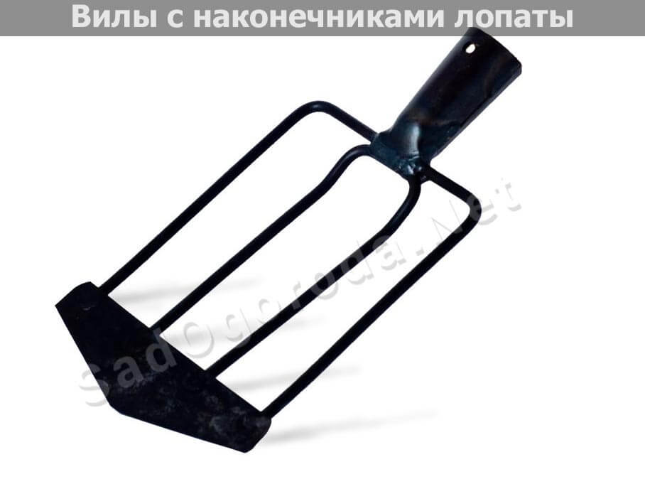 Этот инвентарь напоминает вилы, но помимо расположенных зубьев, на краю инструмента имеется штык. Последний зуб широкий и достаточно острый.