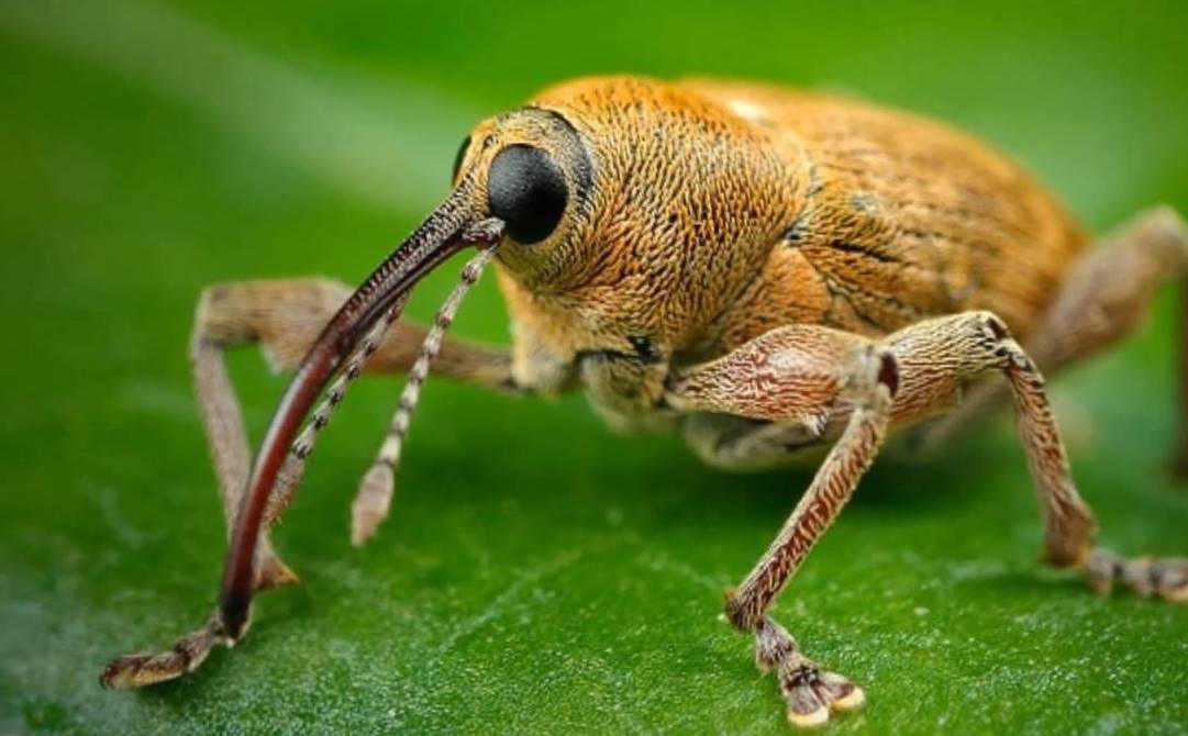 Это самый опасный враг не только яблони, но и груши, боярышника. С ранним весенним пробуждением этот долгоносик наносит мощный удар по почкам и бутонам растения. Размеры этого вредителя небольшие, и составляют примерно 4-5 мм. Основная поверхность тельца покрыта серо-бурым оттенком, где четко расположены косые полоски более светлого тона. Особенностью долгоносика является наличие изогнутого хобота, который похож на дугу. Пробуждение яблонного цветоеда наступает очень рано с первыми лучами весеннего солнца, вылезая из укрытия листвы или коры этого же дерева. Далее вредитель распространяется по всему дереву и начинает атаковать почки, и когда температура воздуха повышается до +10, то можно констатировать целое нашествие этого вредителя. Главной целью на первом этапе является почка, которую в среднем уничтожают и используют в качестве питания около 10 дней. В этот период вредитель мастерски выедает внутренности почки, провоцируя своеобразный «плач», так как обильно выливается жидкость. Цветоед отлаживает яйца, из которых очень быстро появляются личинки, которые продолжают уничтожать, как пестики и тычинки, так и само цветоложе. Как результат, почки меняют свой окрас, не способны распуститься и в итоге засыхают и опадают. Подобная ситуация происходит с соцветиями яблони, ведь на месте привычных цветочков, появляются своеобразные колпачки коричневого цвета. В средине лета, когда вдоволь насытившись и причинив огромный ущерб урожаю, яблонный цветоед прячется в кору и подножья дерева на зимовку, упадая там в спячку.