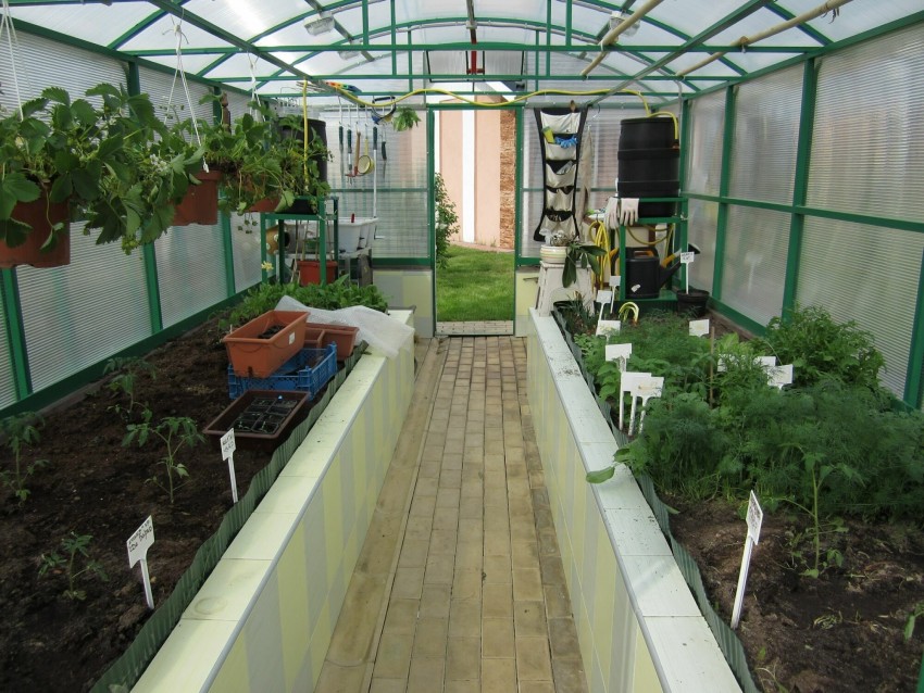 Например, в трёхметровой теплице можно разместить две или три грядки от 70 сантиметров до одного метра.