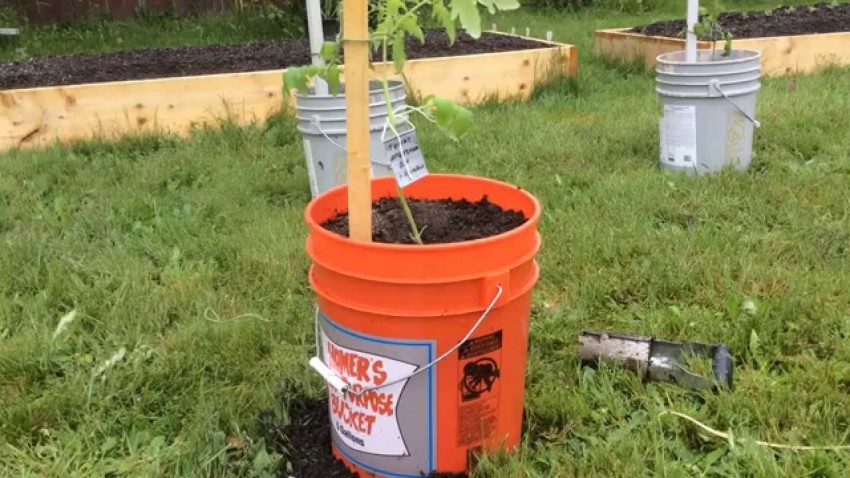 - Для дальнейшей подвязки возле каждого растения установите колышек высотой около 60 см.