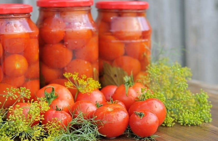 - помидоры укладывают в стерильную тару, заливают маринадом;