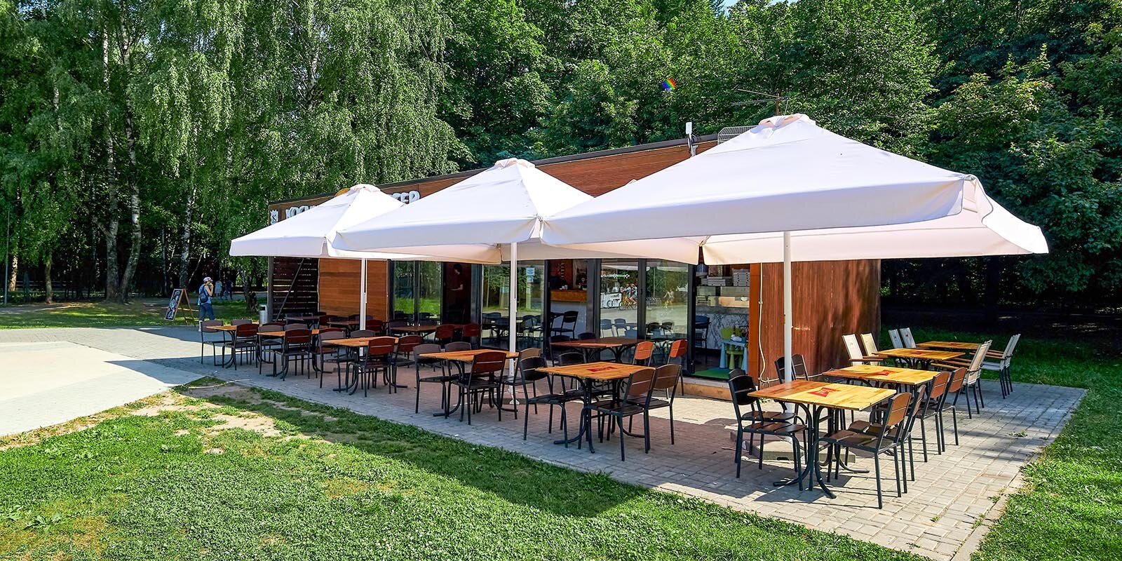 К материалам, цвету и конструкциям летнего кафе также предъявляют высокие требования, но найти подходящий вариант для его обустройства довольно просто. Так, можно использовать металлические и деревянные каркасы, зонты, маркизы и перголы. Ресторанная мебель и оборудование ставятся или на существующее покрытие — асфальт или плитку, или на деревянный настил-подиум.