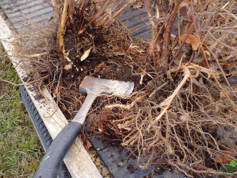 Метод достаточно прост и эффективен для кустов малого и среднего размера. Его недостаток заключается в том, что уже в возрасте 5-7 лет у куста может быть такая корневая система, разделить которую на несколько частей просто не получится, а если попытаться это сделать, растение может погибнуть.